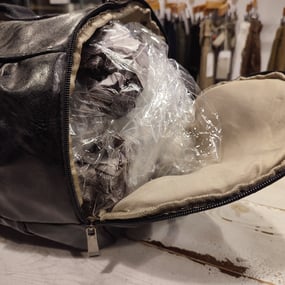 Gli imballi in plastica dei prodotti vengono utilizzati per riempire gli zaini in esposizione e gli imballi di cartone per la realizzazione delle vetrine.